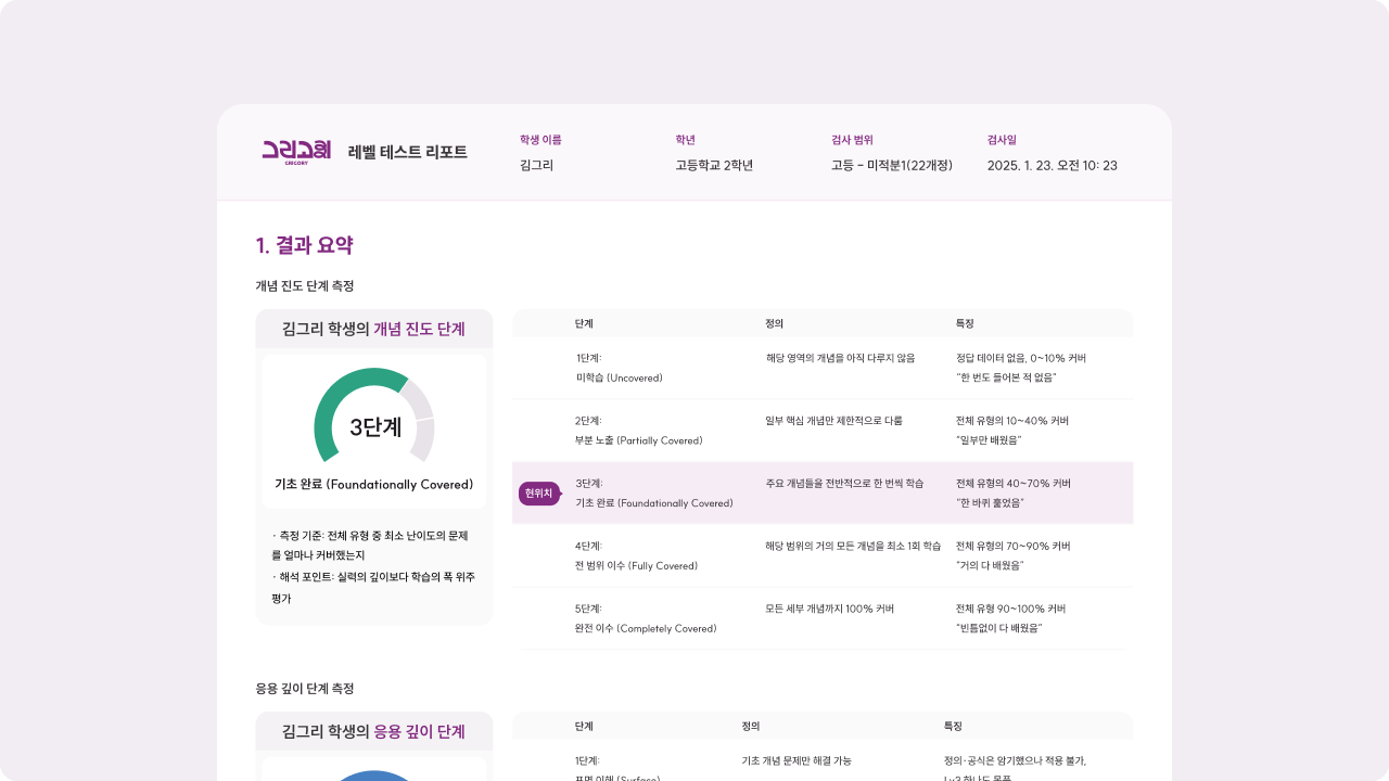 그리고리의 레벨 테스트는 실시간으로 조정되는 반응형 출제를 통해