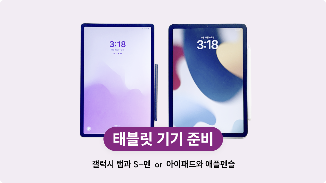 갤럭시 탭과 S-펜, 혹은 아이패드와 애플펜슬 등이 필요해요.
