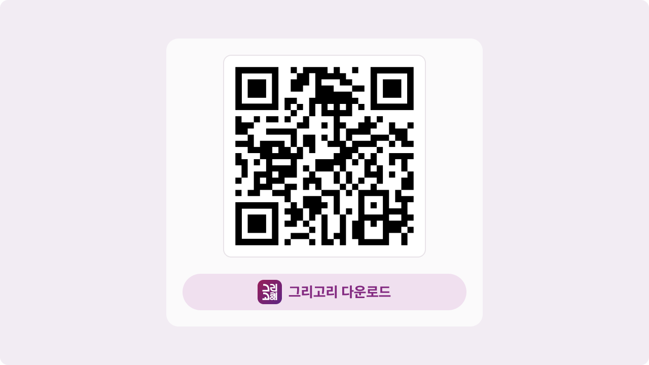 또는, 태블릿의 카메라 앱을 통해 아래의 QR 코드를 스캔하면 바로 그리고리 앱을 다운로드 할 수 있어요.